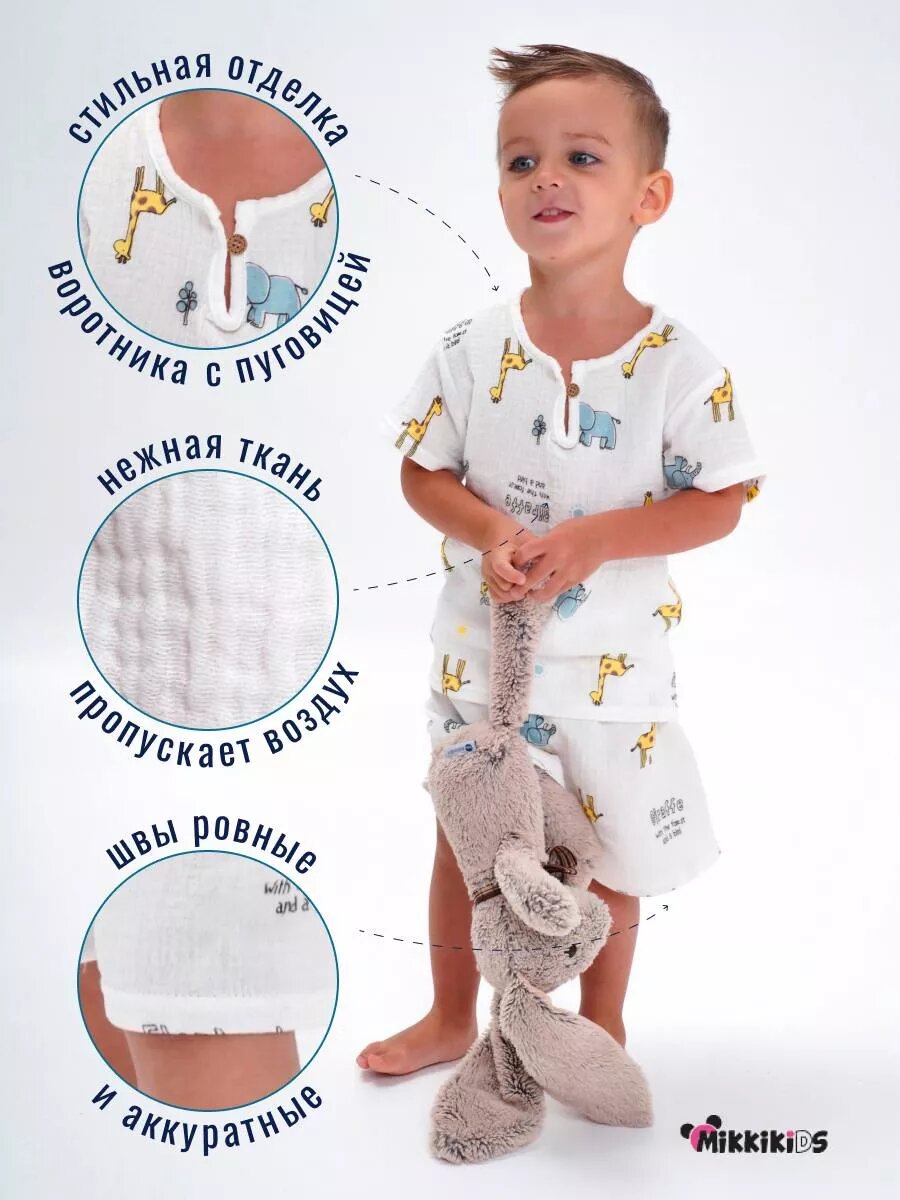 Пижама MikkiKiDS, размер 80, белый с принтом 1 350 ₽