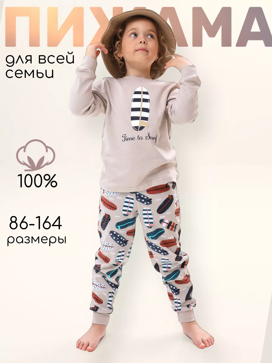 10 цен на Пижама Miko Yumi, размер 116, бежевый, белый, серый