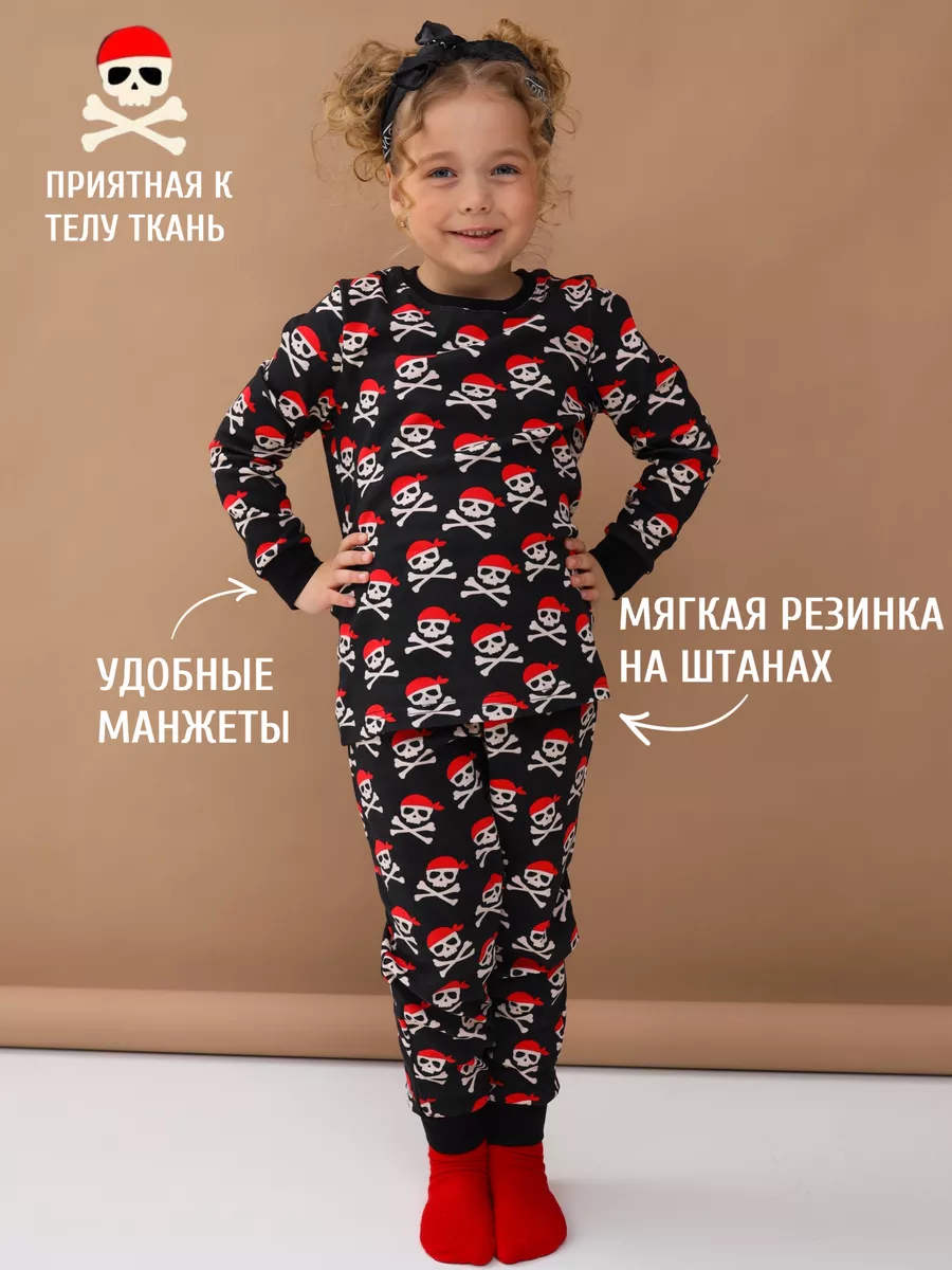 Пижама Miko Yumi, размер 122, черный, белый, красный 1 250 ₽