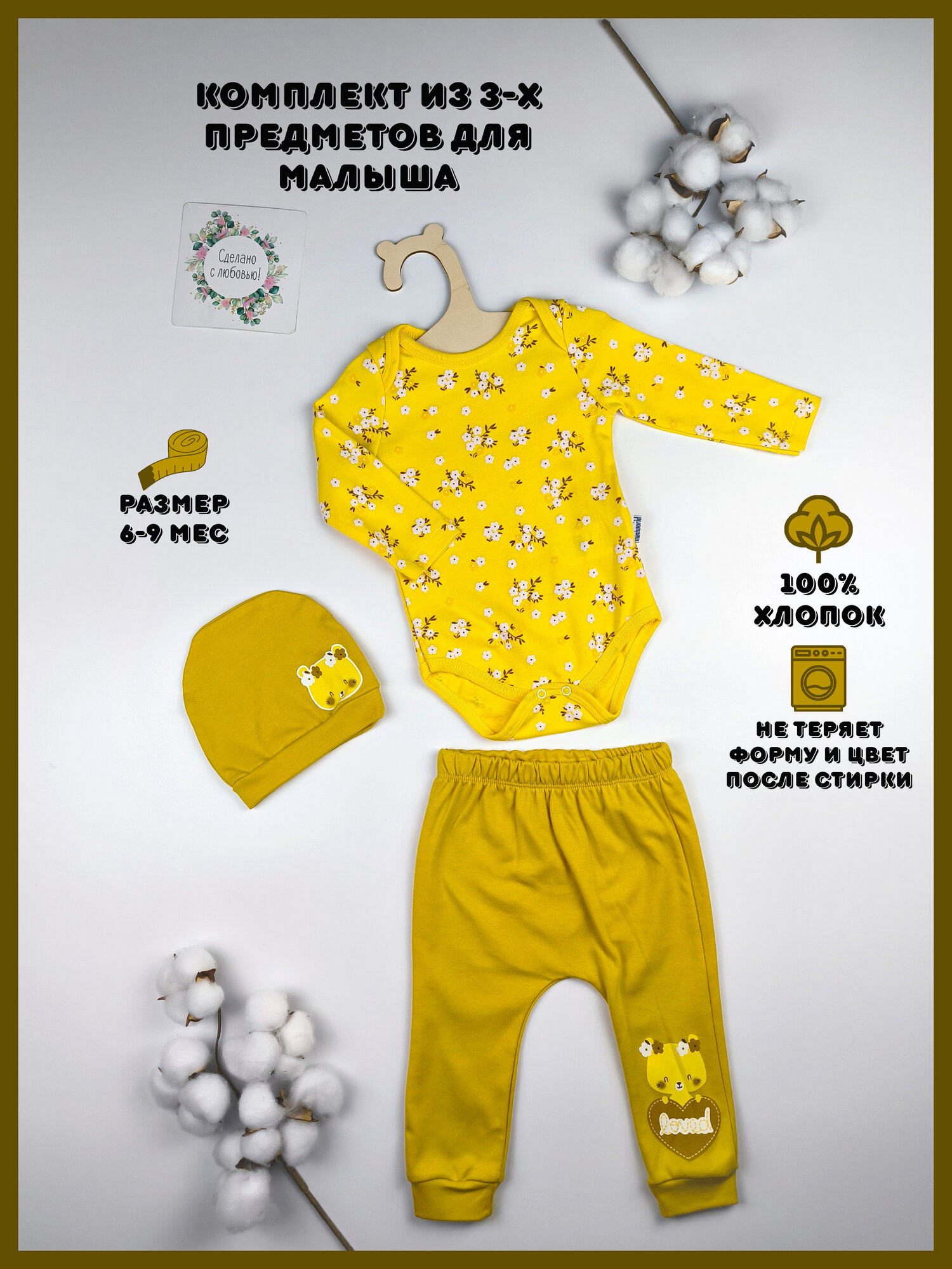 Характиристики этого товара не найдены!Отзывы на Комплект одежды Базовая коллекция, размер 6-9 мес, горчичный, желтый