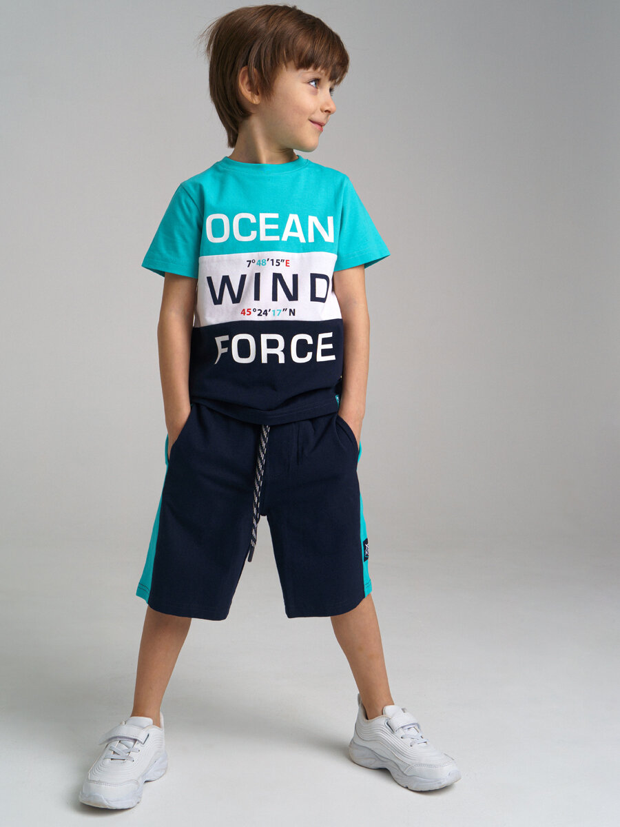 Комплект одежды playToday Весна-лето 2025, размер 122, голубой/темно-синий 1 457 ₽