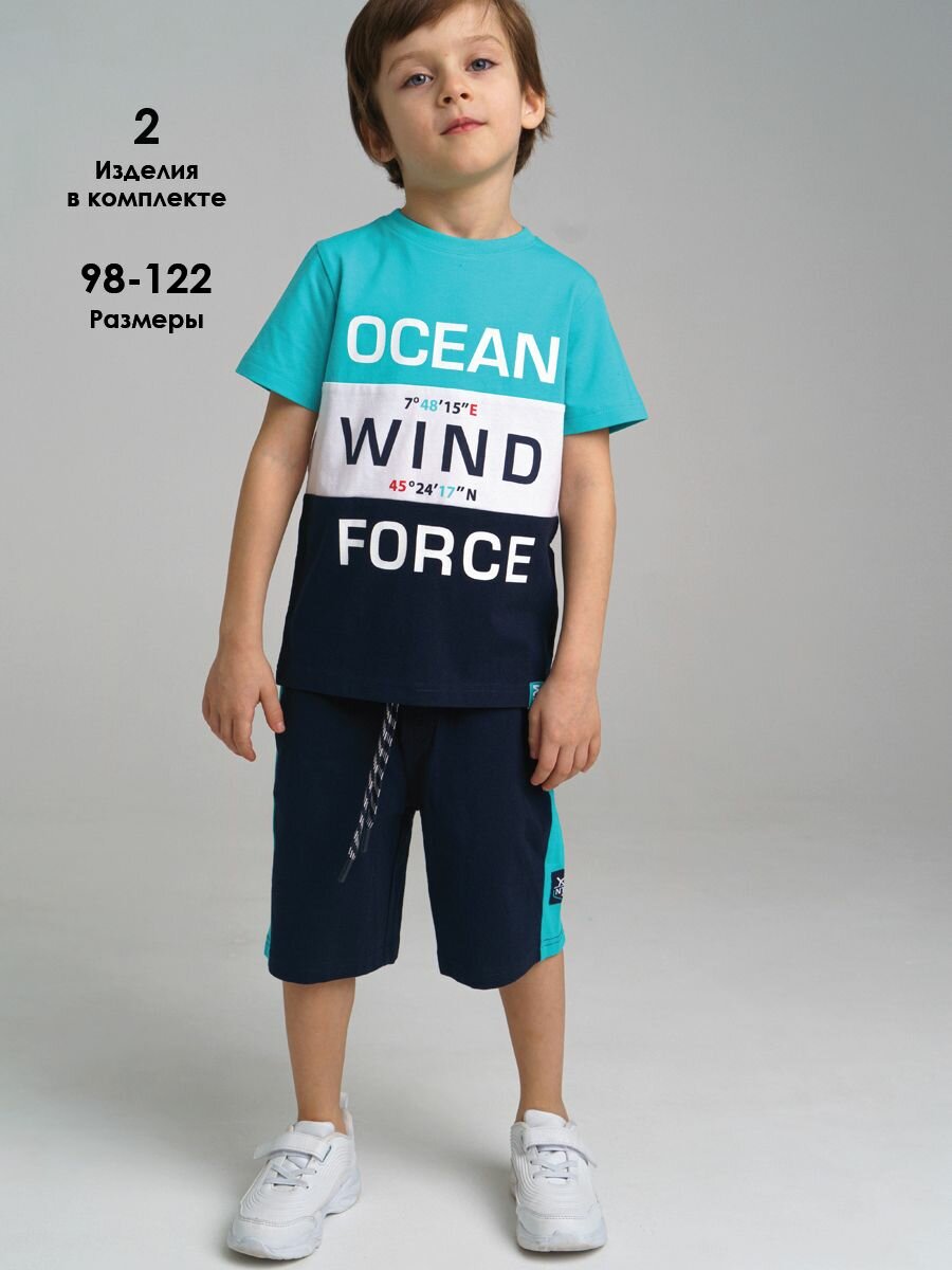 Комплект одежды playToday Весна-лето 2025, размер 122, голубой/темно-синий 1 457 ₽