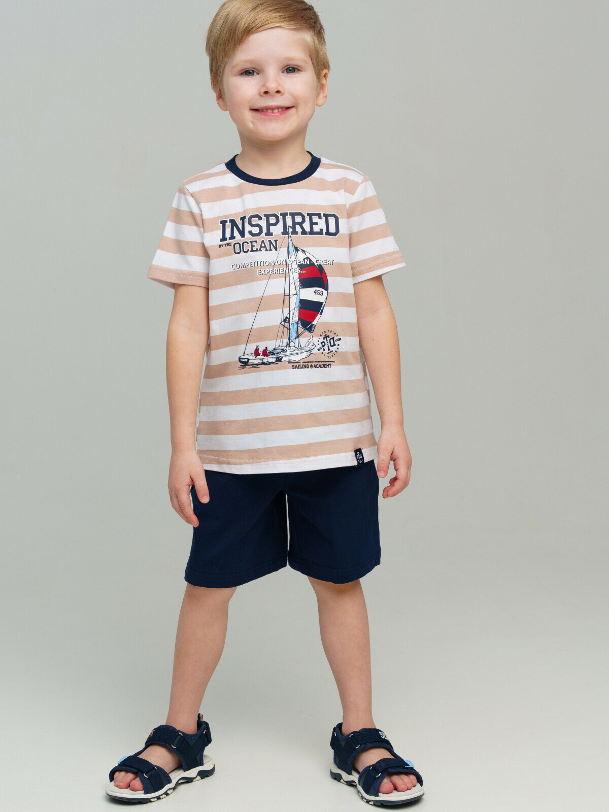 Комплект одежды playToday, размер 116, бежевый, белый, синий 1 318 ₽