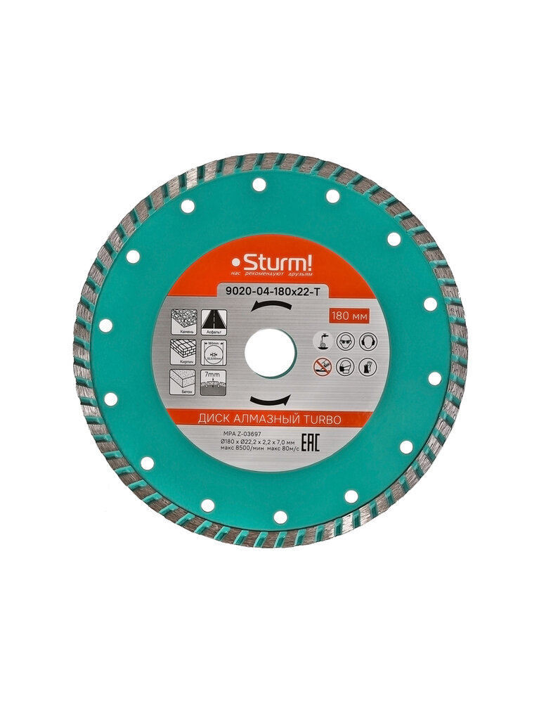 Диск алмазный Sturm! 9020-04-180x22-T, сухая резка, "Турбо" 180мм