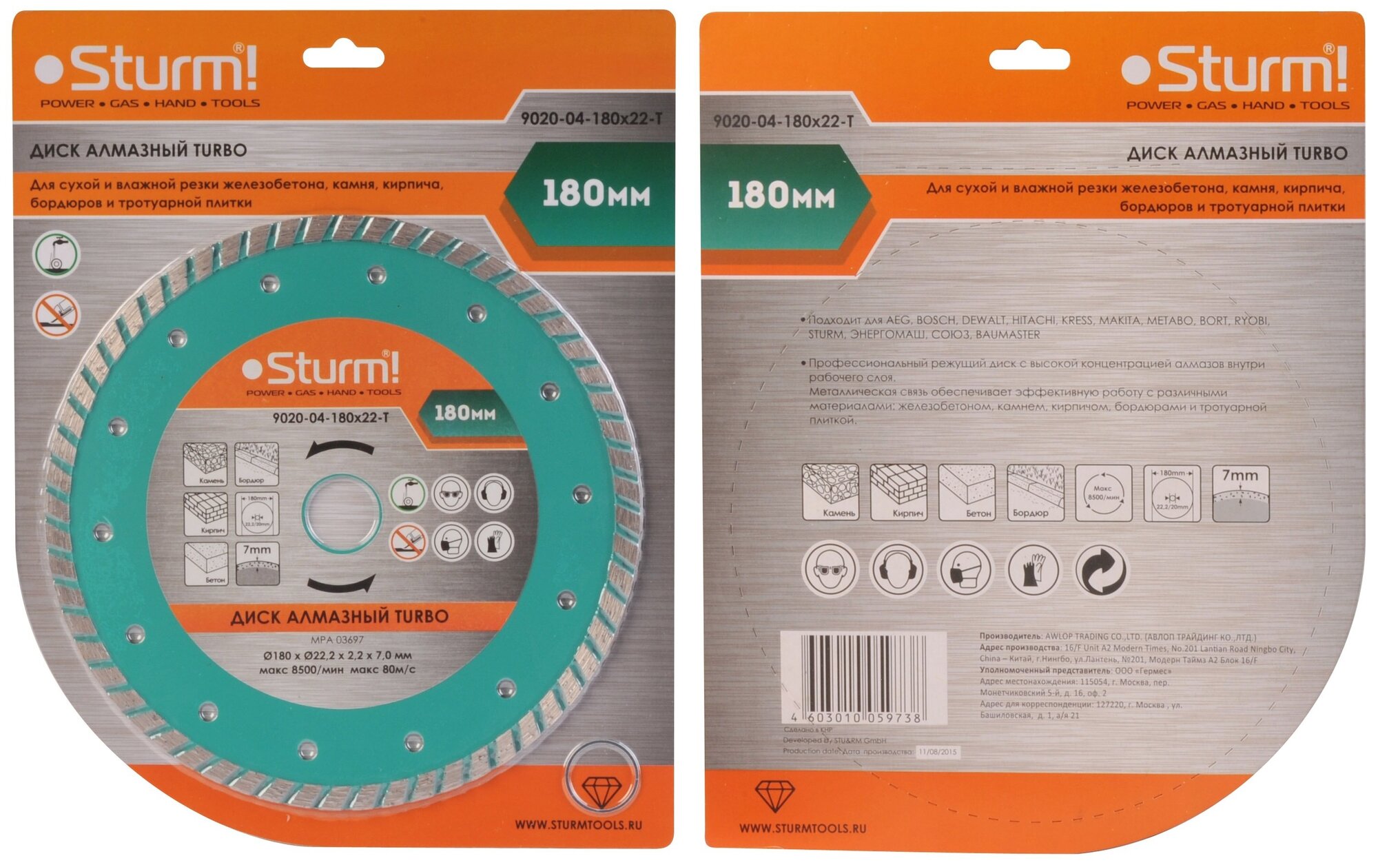 Диск алмазный отрезной Sturm 180x22 9020-04-180x22-T .