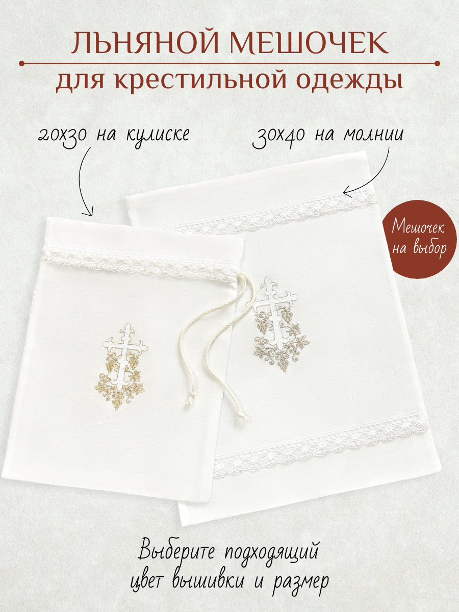 Мешочек для одежды крестильный Крестильное крестильное, размер 20*30, белый, бежевый 2 000 ₽