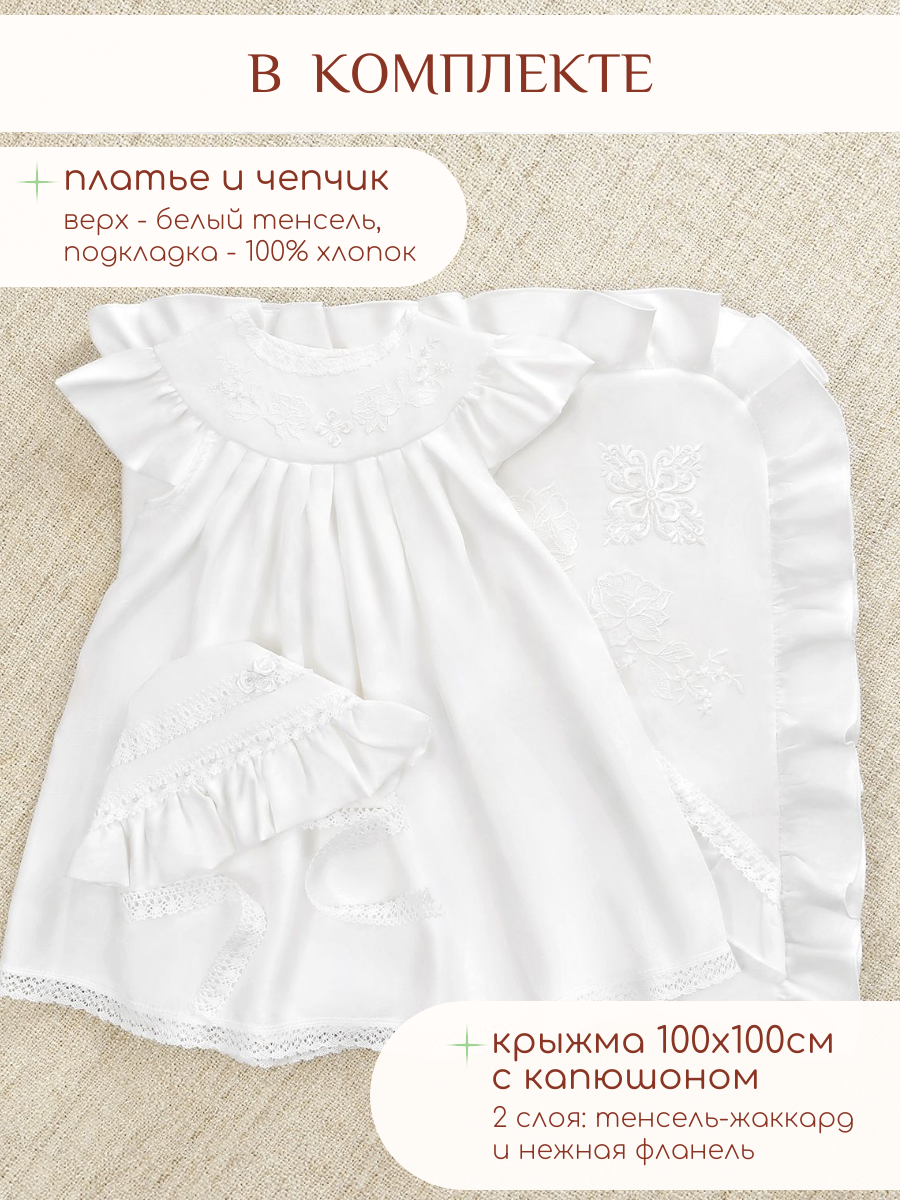Комплект крестильный Крестильное Дарья, размер 104, белый информация: