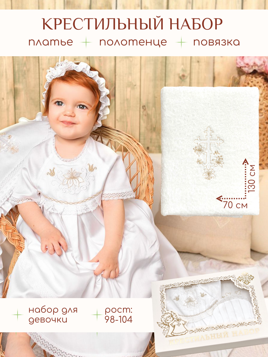 Комплект крестильный Крестильное Елизавета, размер 104, белый информация: