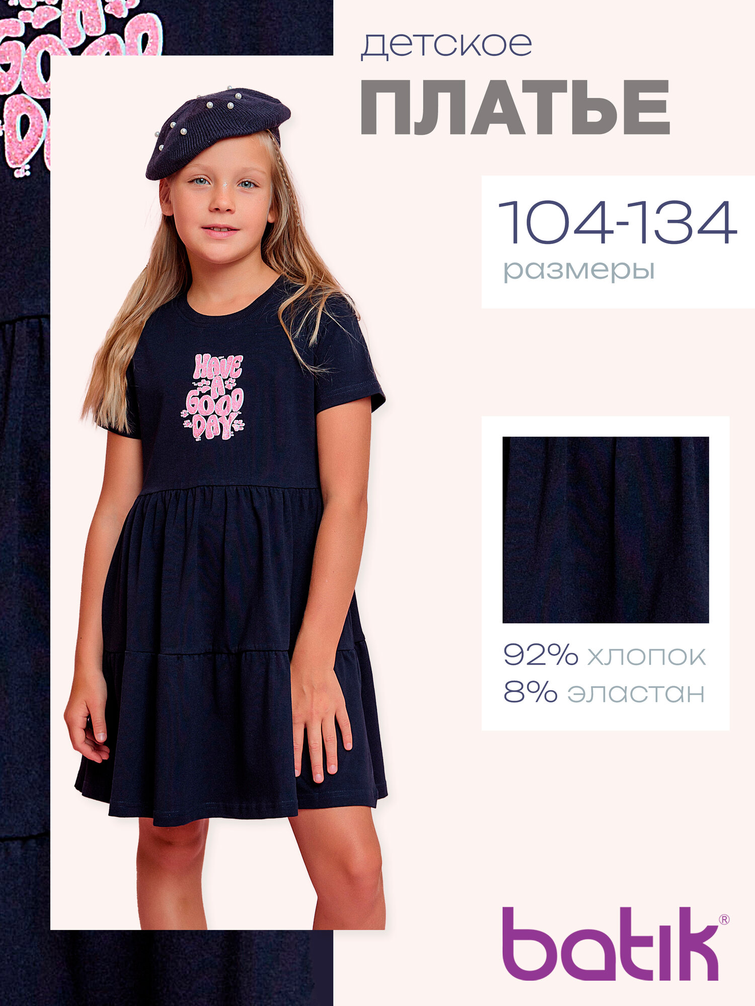 Платье Batik, размер 128, розовый, белый, синий 980 ₽