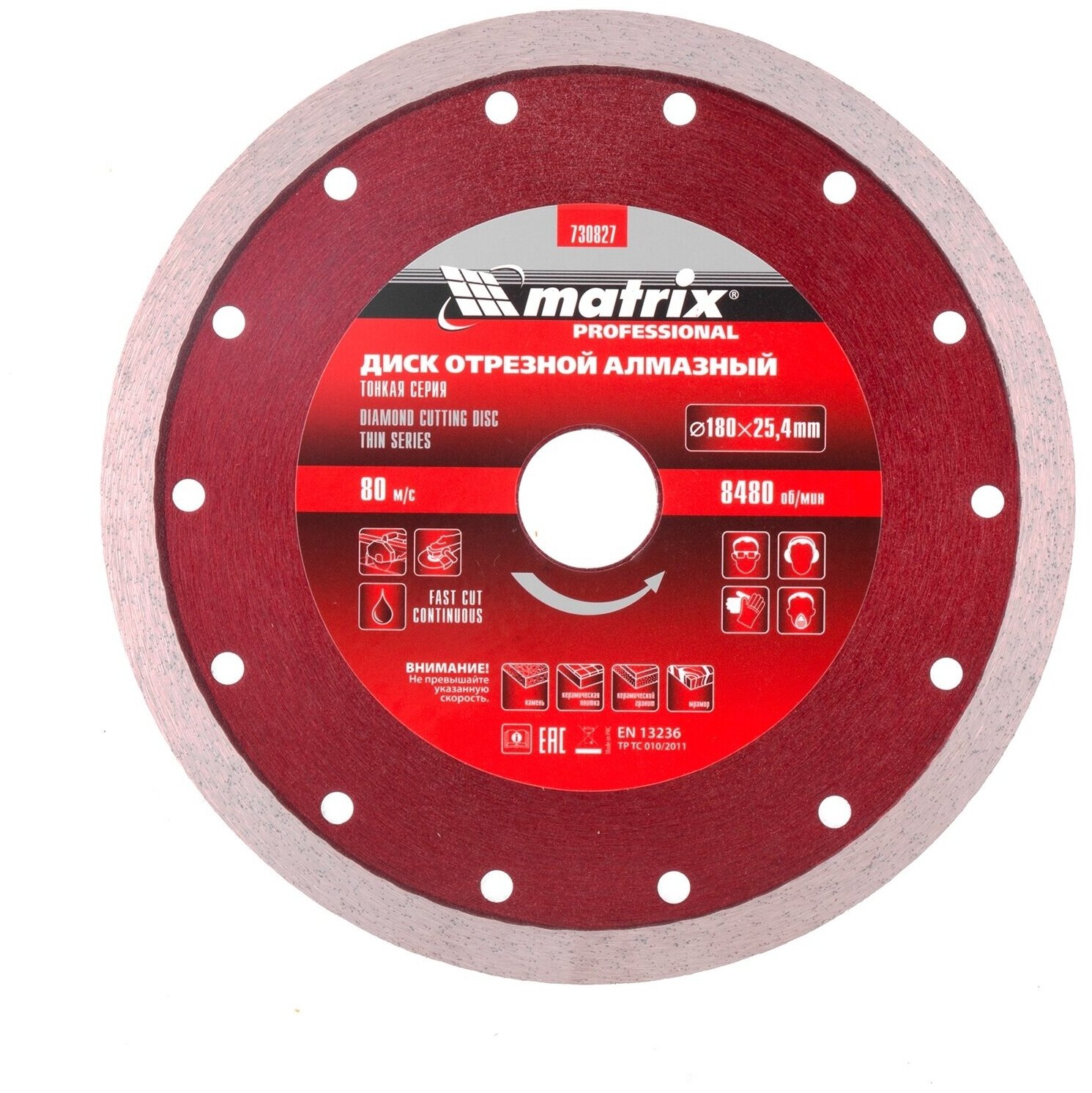 Диск алмазный сплошной, тонкий, 180 х 25,4 мм, мокрое резание Matrix информация: