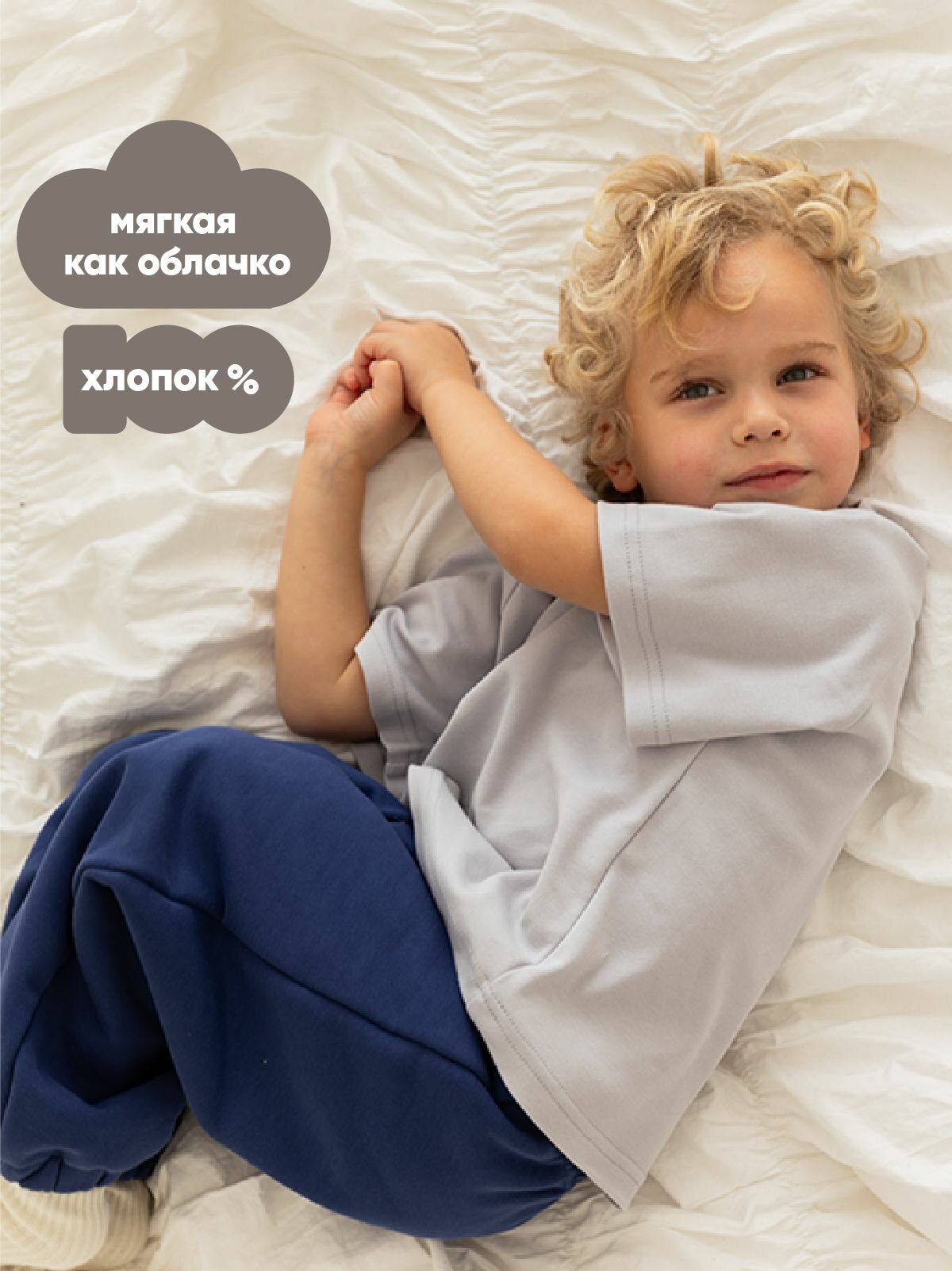 Футболка рубибуби новая коллекция, футболка оверсайз, размер 98-104, бело-голубой 1 200 ₽