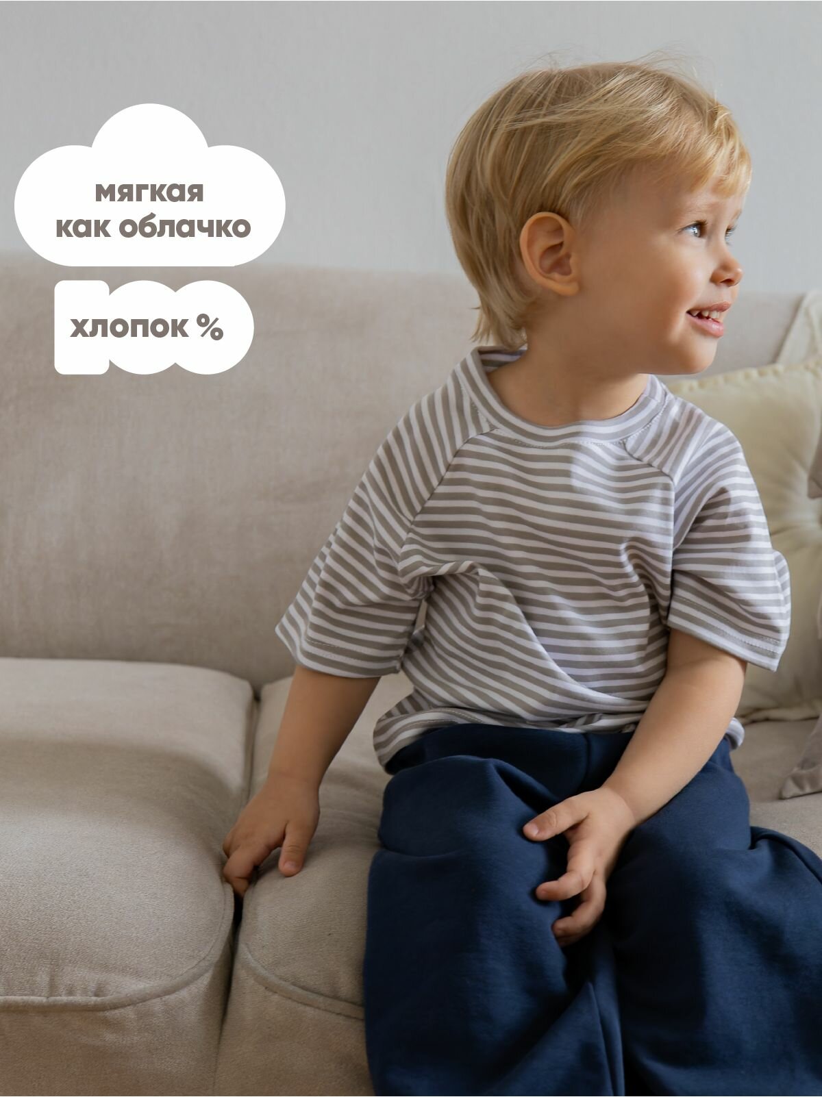 Футболка рубибуби новая коллекция, футболка оверсайз, размер 80-86, белый/серая полоска 1 200 ₽