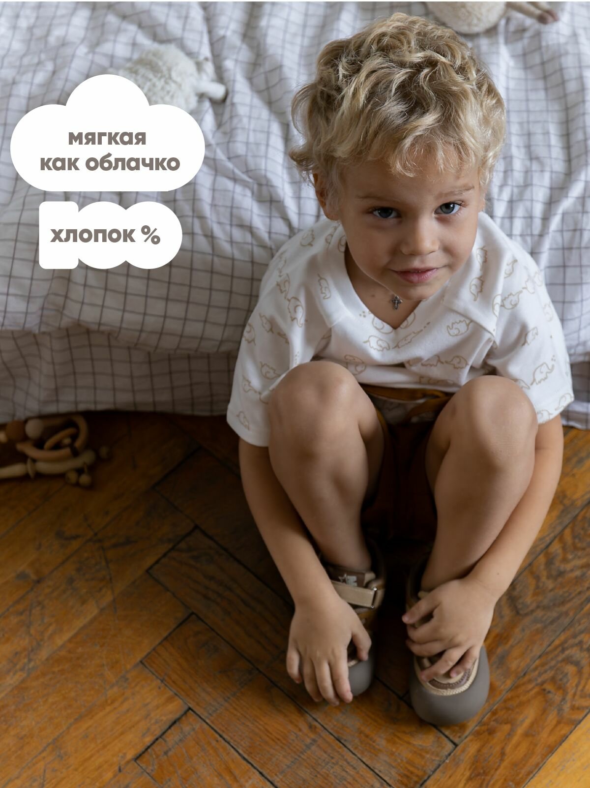 Футболка рубибуби новая коллекция, футболка оверсайз, размер 80-86р, молочный/коричневый 1 200 ₽