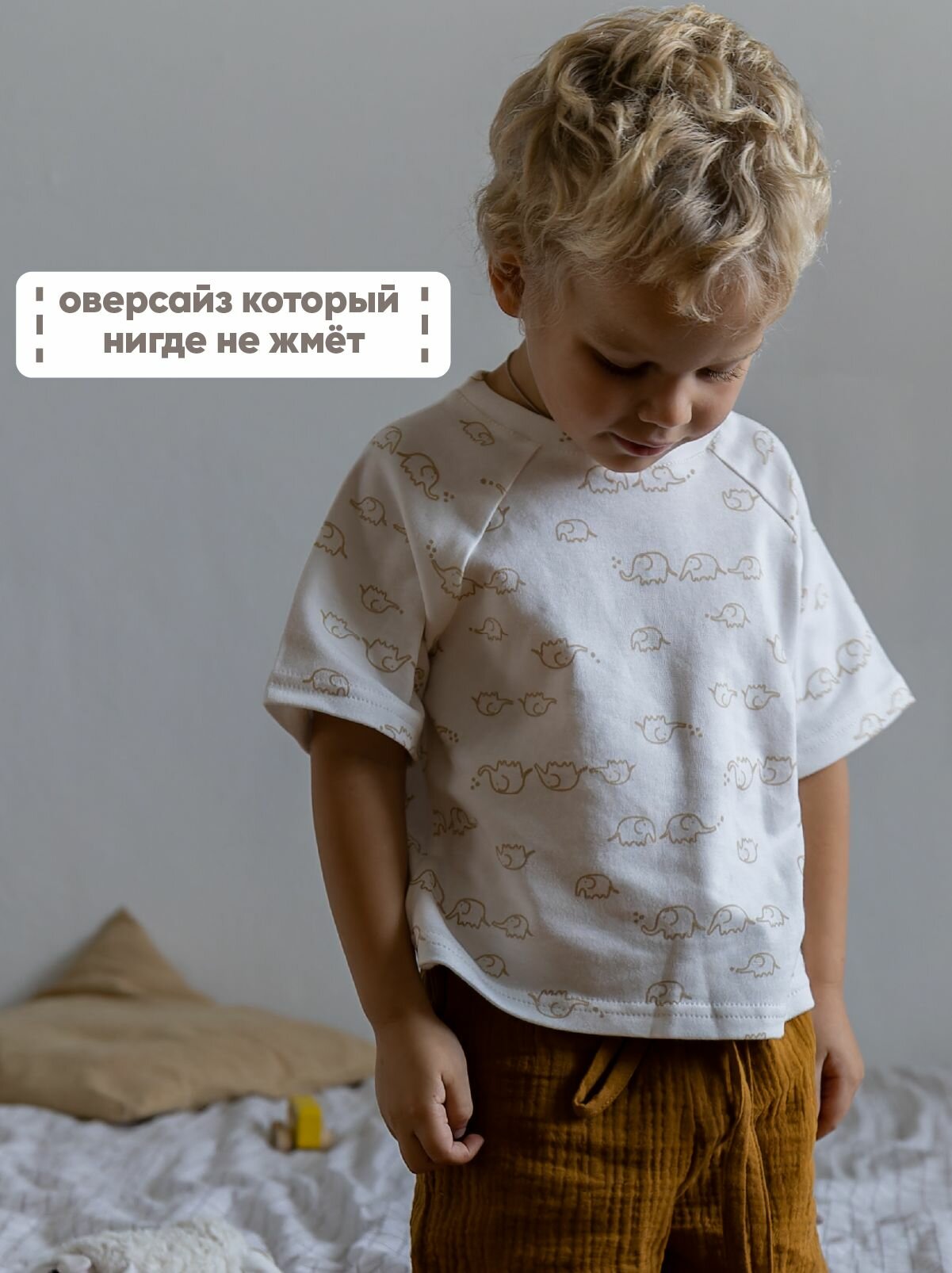 Футболка рубибуби новая коллекция, футболка оверсайз, размер 86-92р, молочный/коричневый информация: