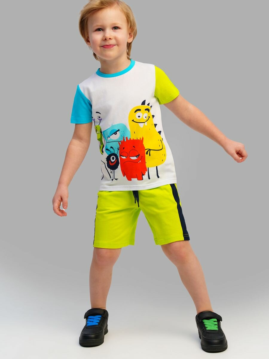 10 цен на Футболка playToday Весна-лето 2025, размер 116, белый/голубой/зеленый