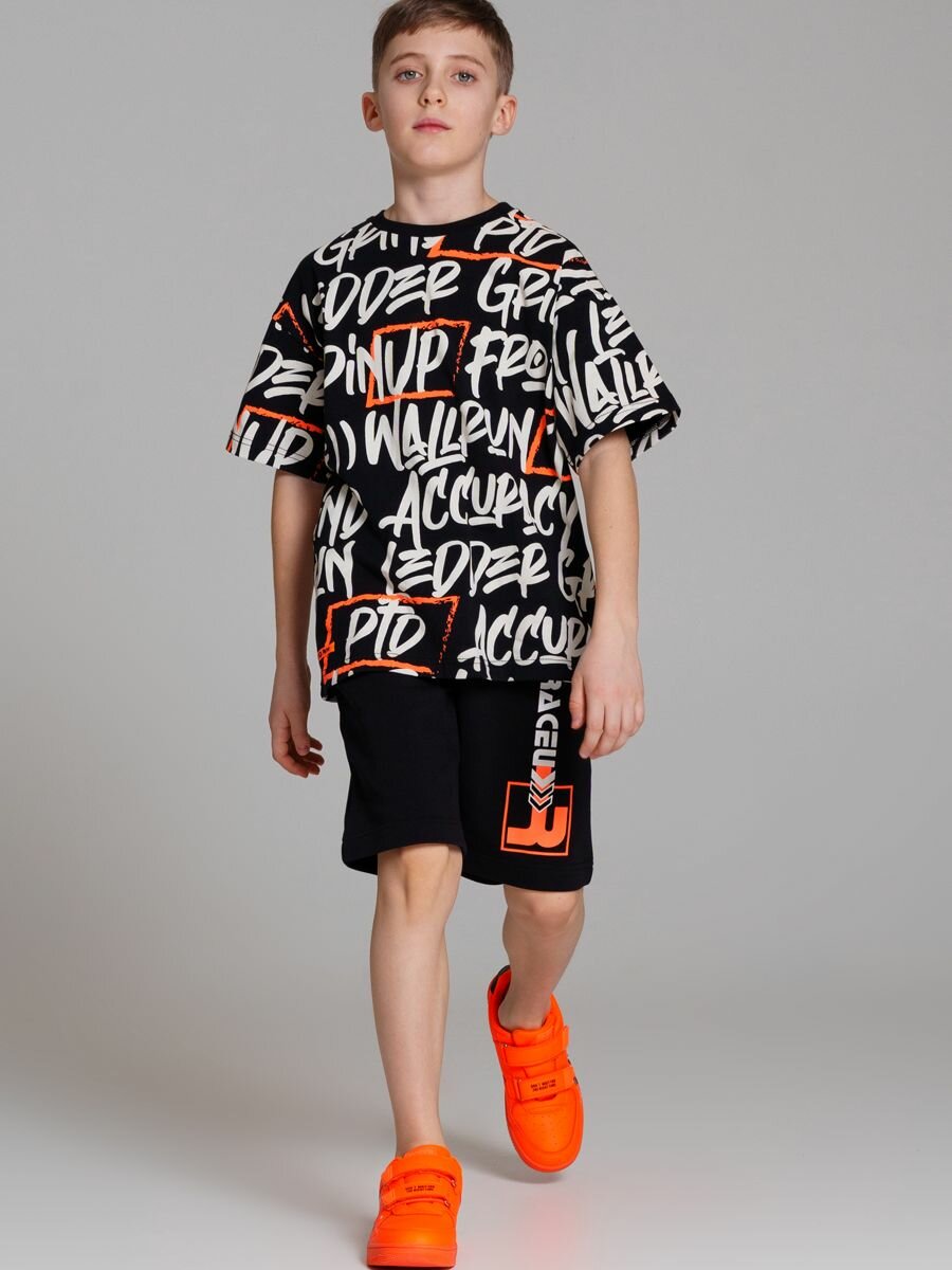 Футболка playToday Весна-лето 2025, размер 140, черный/белый/оранжевый 1 214 ₽