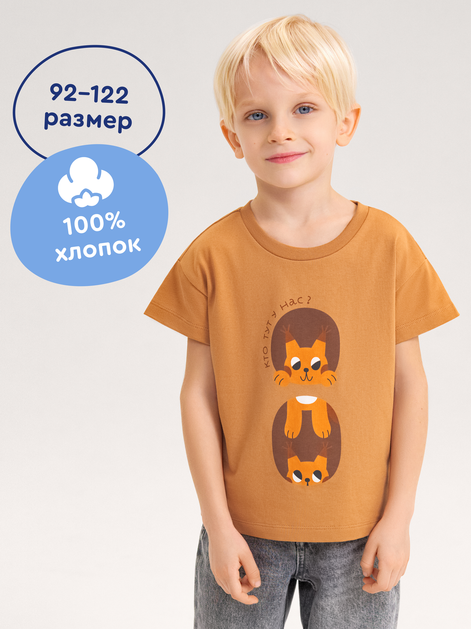Футболка Junion Regular с принтом, размер 92, бежевый 799 ₽
