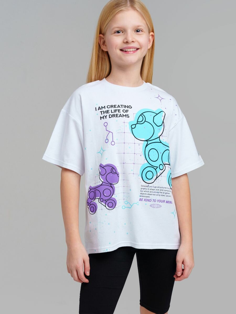 Футболка playToday Весна-лето 2025, размер 152, белый/фиолетовый/голубой 678 ₽