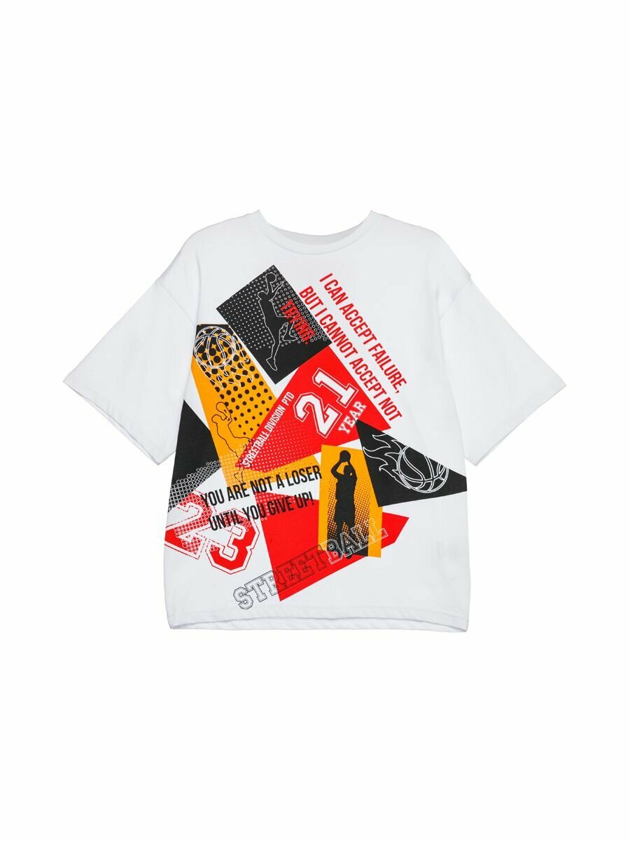 Футболка playToday Весна-лето 2025, размер 176, белый, красный, оранжевый 809 ₽
