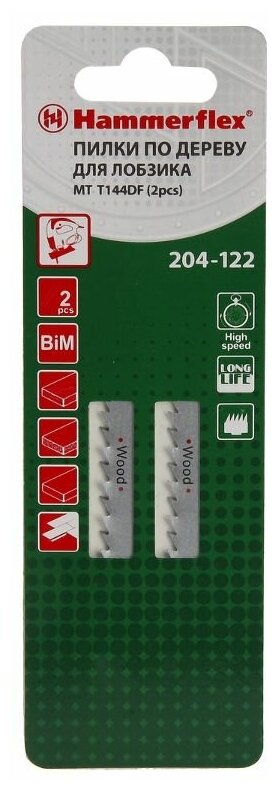 Пилка для лобзика Hammer Flex 204-122 JG MT T144DF мягкое дерево, 75мм, шаг 4.0, BiMET, 2шт. информация: