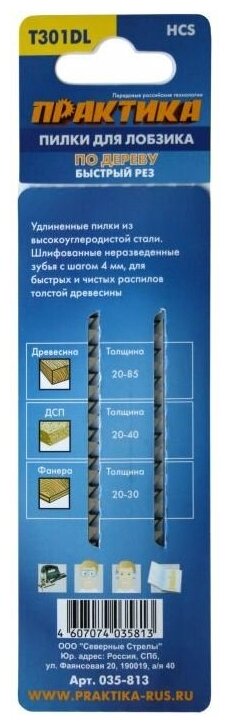 Отзывы на Пилки для лобзика по дереву, ДСП тип T301DL 132 х 110 мм, быстрый рез, HCS (2шт.) ПРАКТИКА 035-813