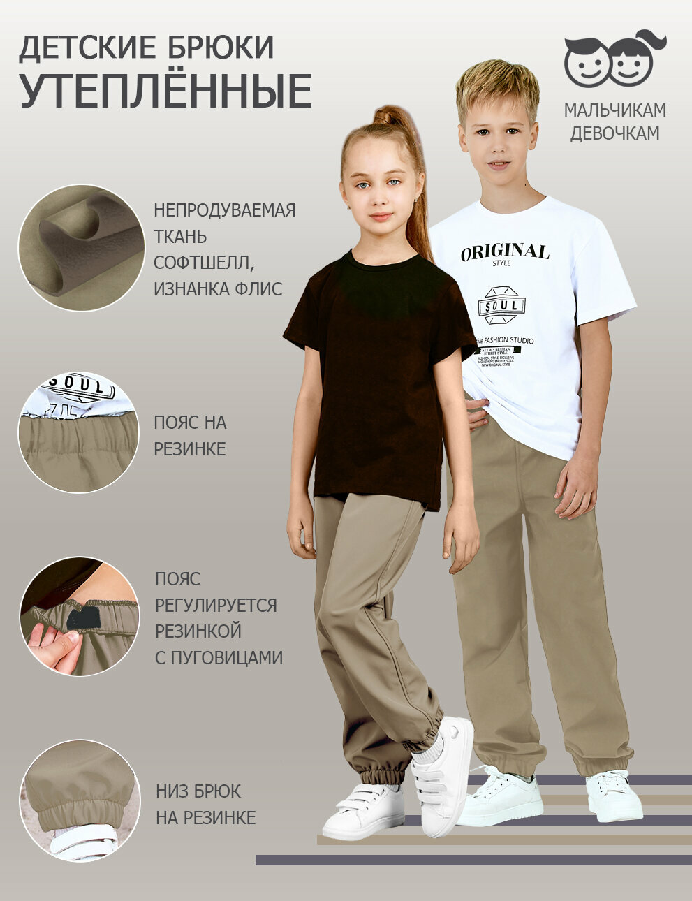 10 цен на Брюки утеплённые KETMIN демисезонные детские на флисе мембрана, размер 134, , бежевый/коричневый