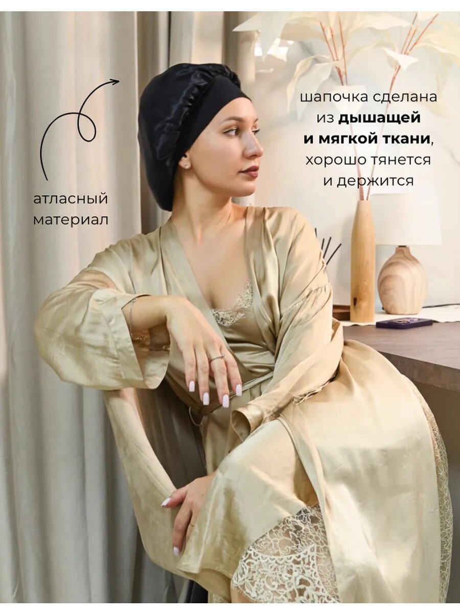 Шапочка для сна WMA STORE, женская, атласная, черная, 50-60 размер информация: