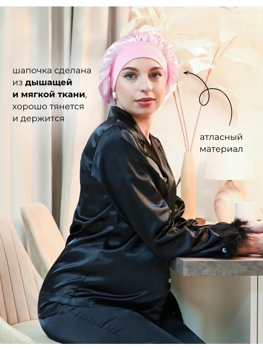 Шапочка для сна WMA STORE, атласная, шелковая, с эластичной резинкой, розовая информация: