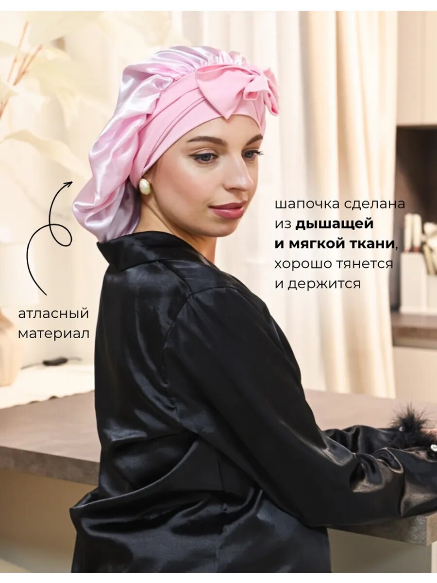 10 цен на Шапочка для сна WMA STORE, двухсторонняя, атлас, женская, цвет розовый, размер 54-60