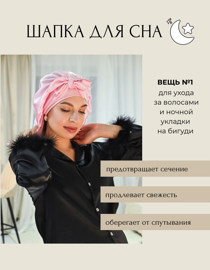 Шапочка для сна WMA STORE, атласная, шелковая, с эластичной резинкой, розовая 625 ₽