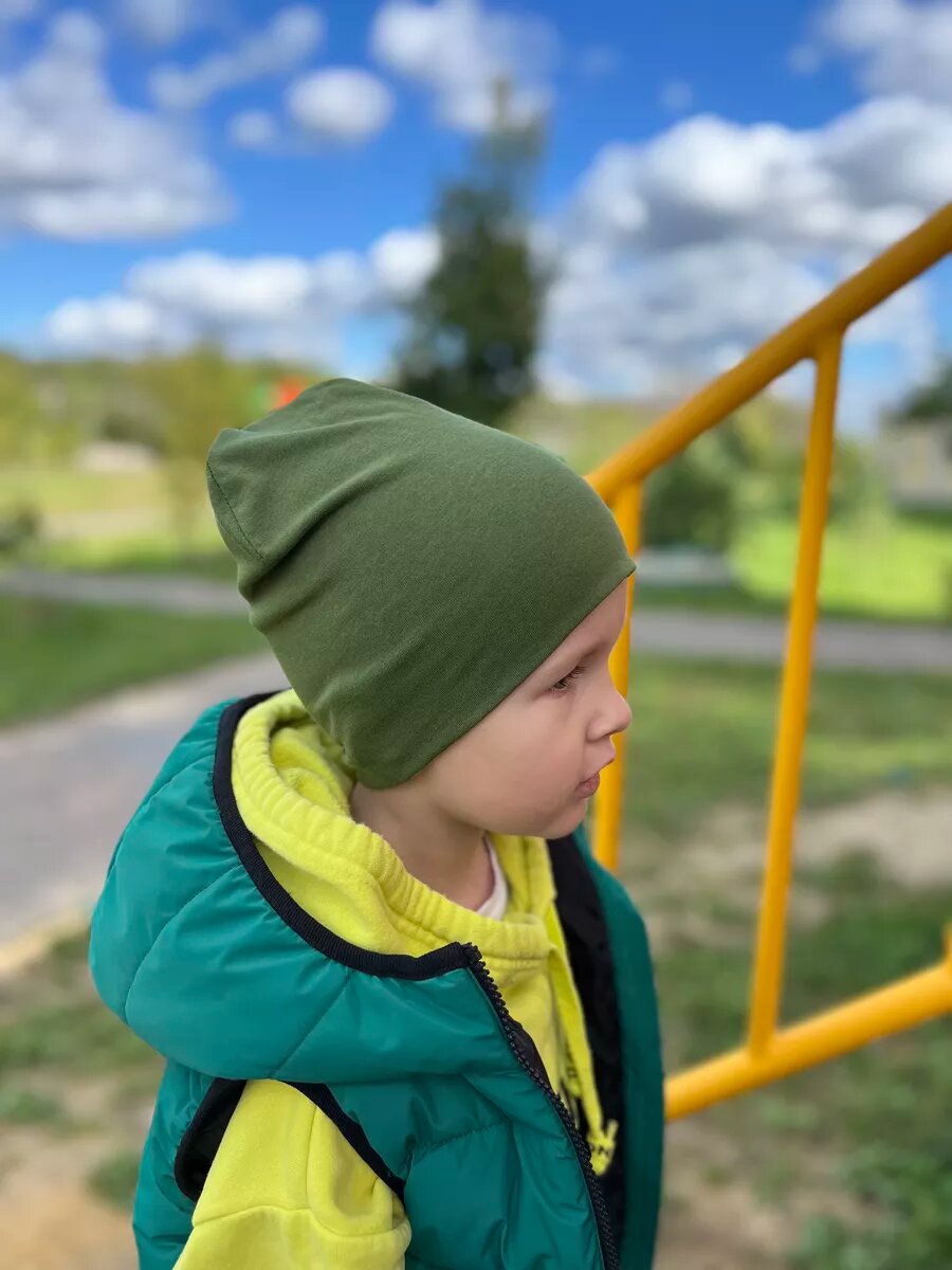 Шапка-бини Зелёная Сова для детей, размер 46-48, зелeный 610 ₽