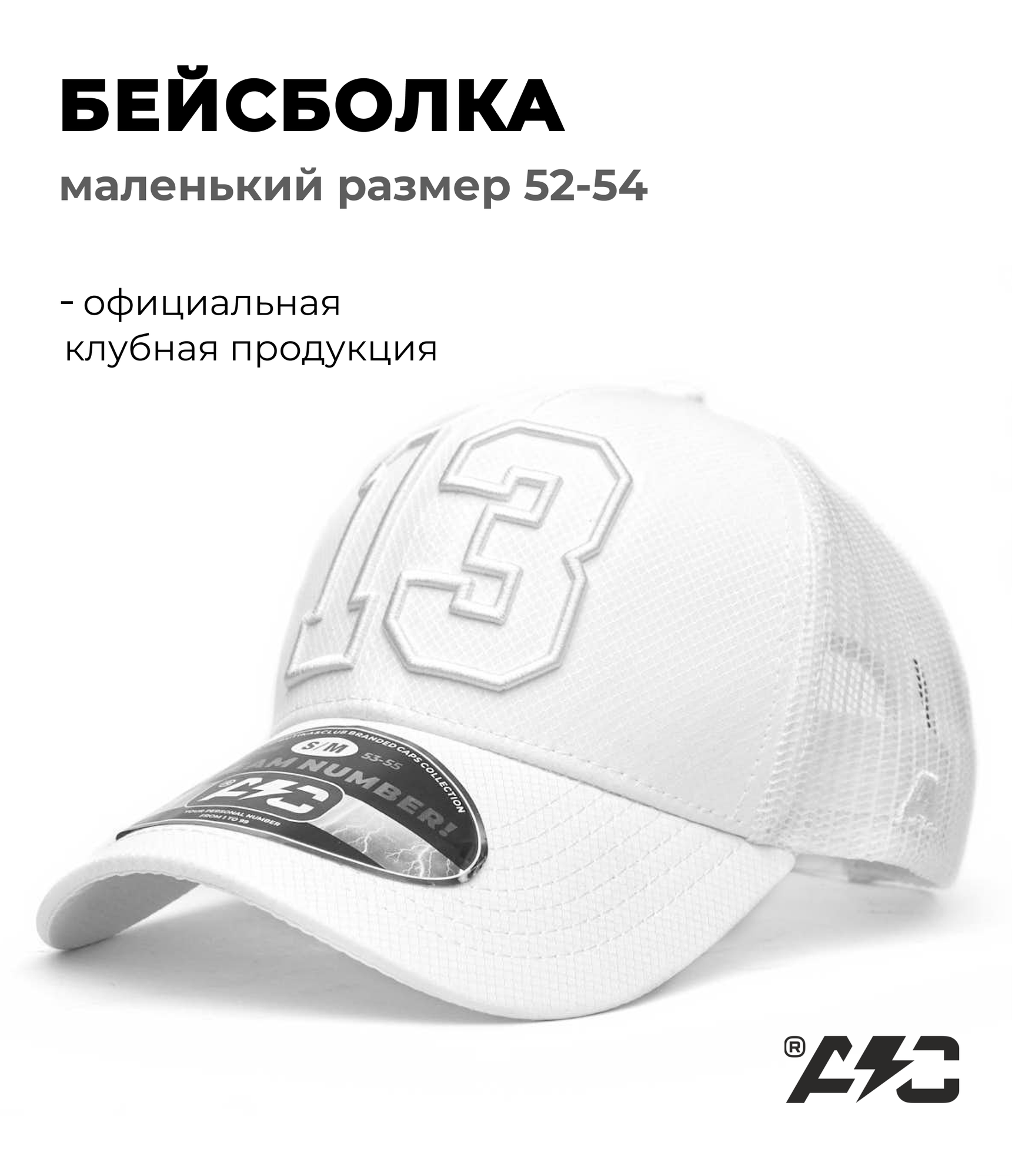 Бейсболка Atributika & Club team number для детей, размер 52-54, белый информация: