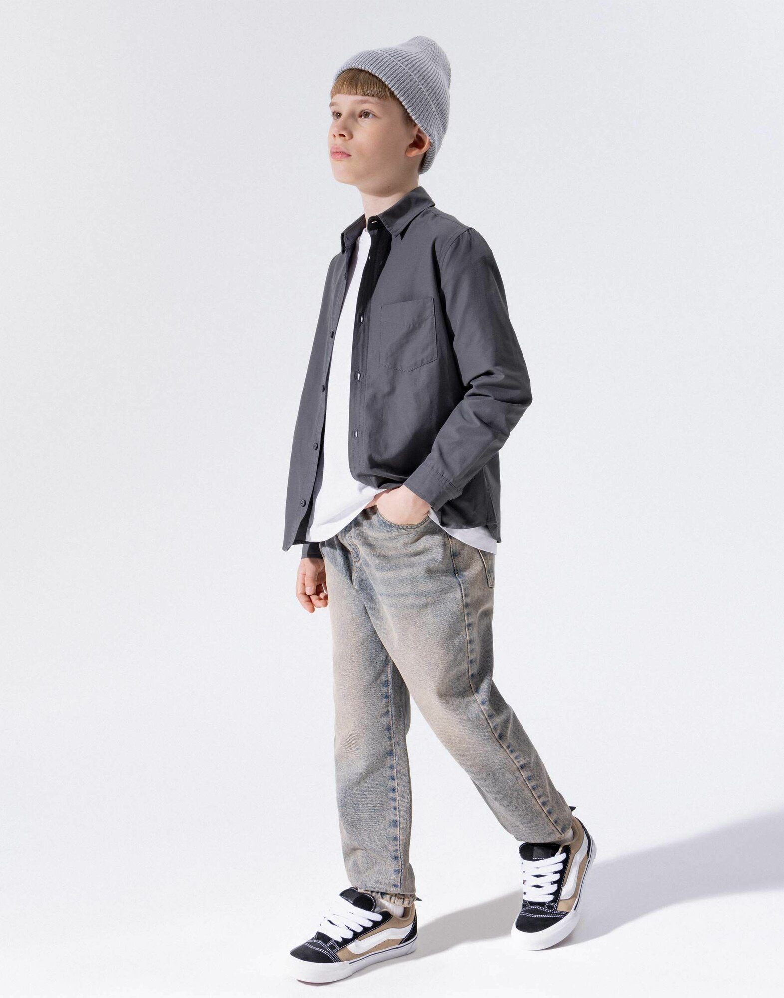 Джинсы Gloria Jeans, размер 7-8л/128 (32), серый, коричневый 1 899 ₽