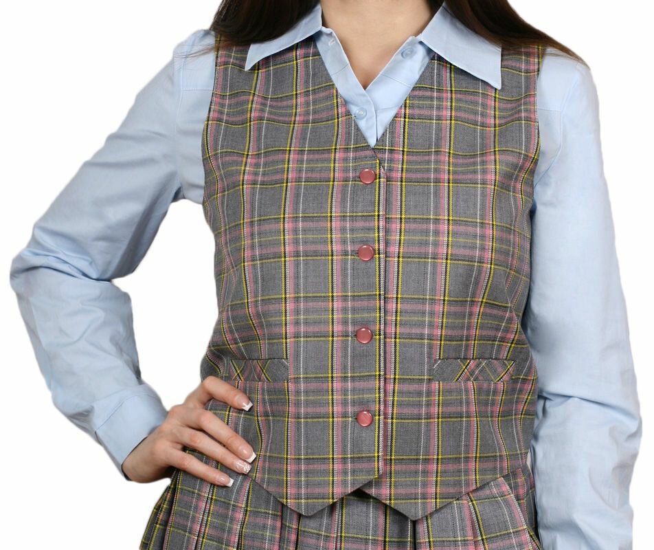 Школьный жилет ПолиШинель Ольга, размер 158-80-66, серый, розовый 1 847 ₽