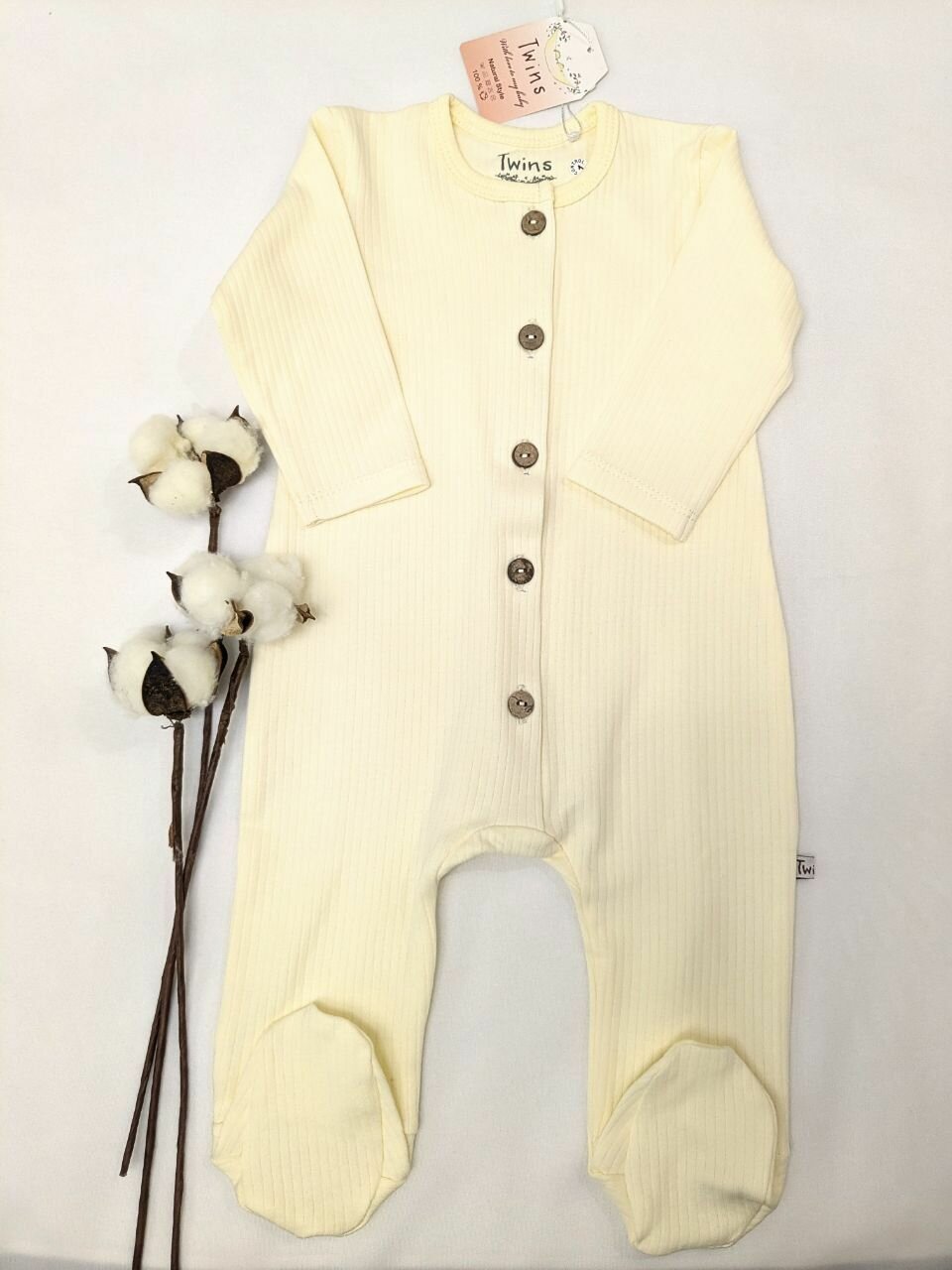Комбинезон Twins Базовая коллекция, закрытая стопа, размер 80 (12 мес), молочный информация: