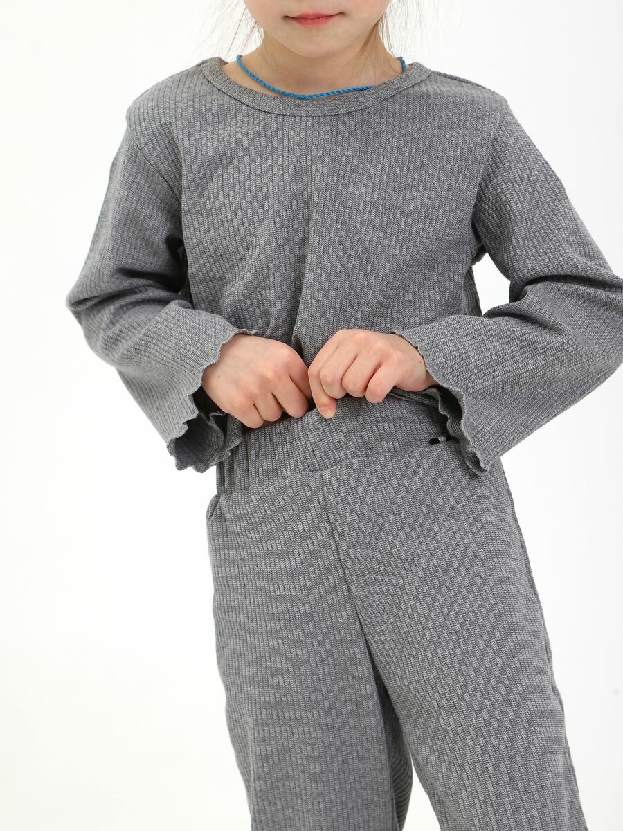 Комплект одежды КитаМиш домашний трикотажный для девочки, размер 42-146, серый меланж/темно-серый информация: