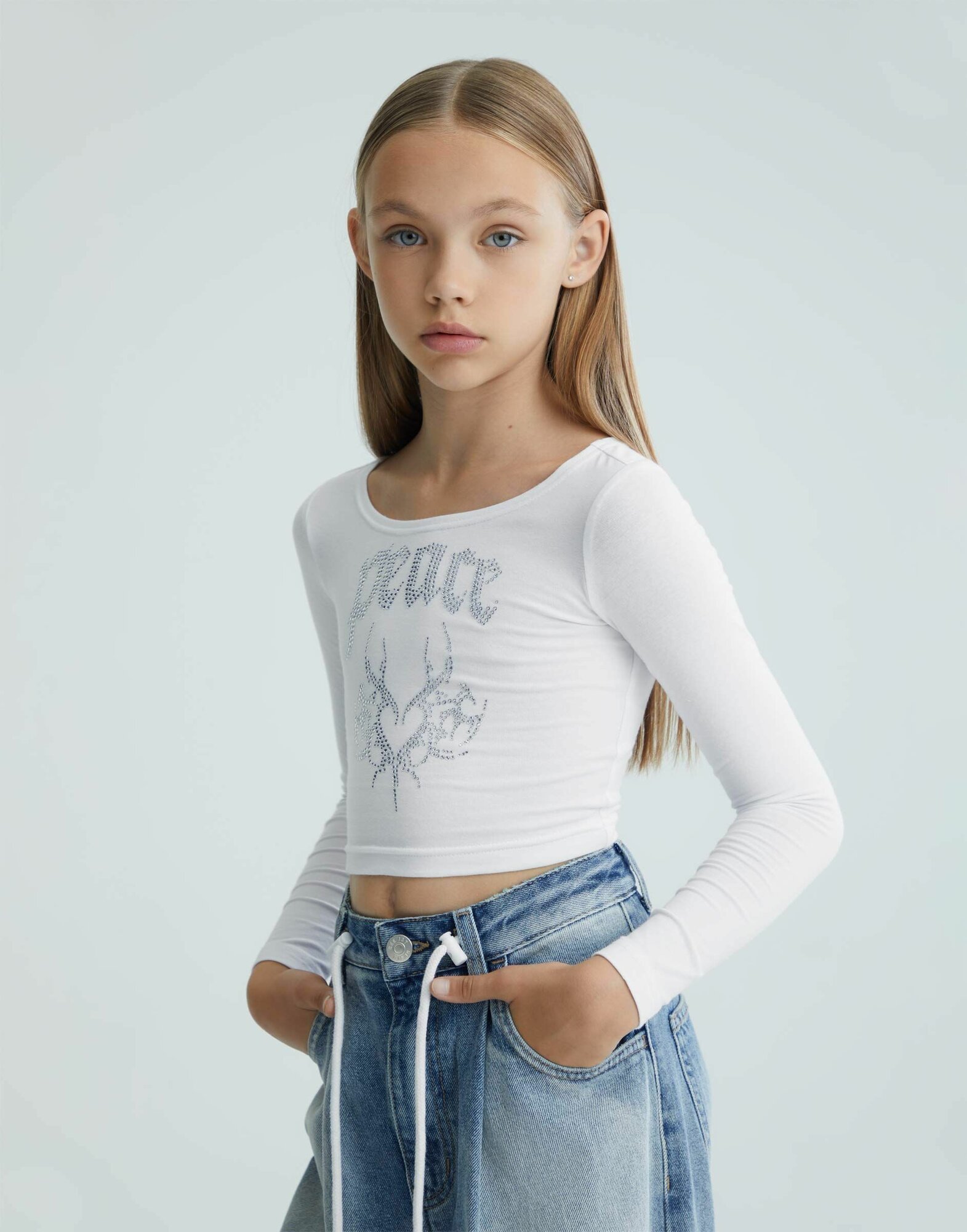 Лонгслив Gloria Jeans, размер 10-12л/146-152, белый 299 ₽