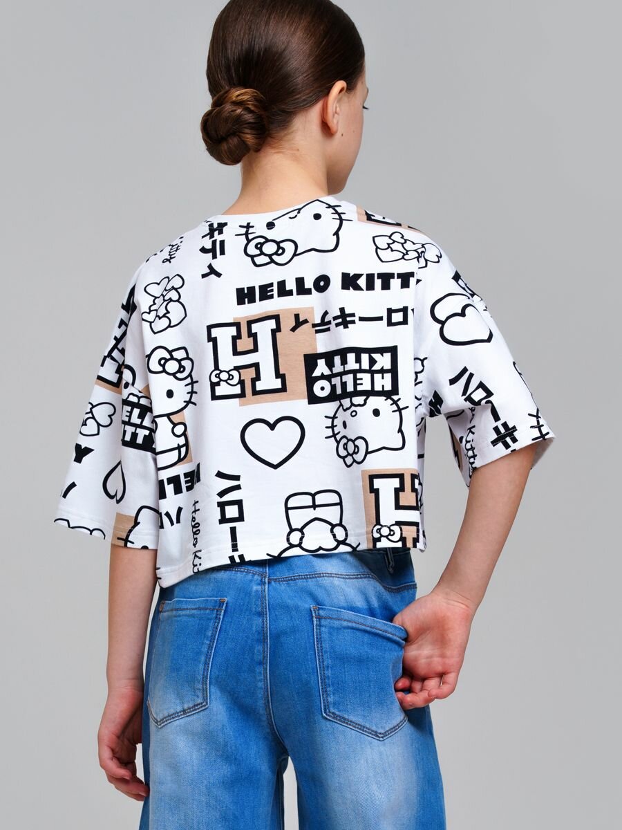 Футболка playToday Весна-лето 2025, размер 158, белый, бежевый, черный 811 ₽