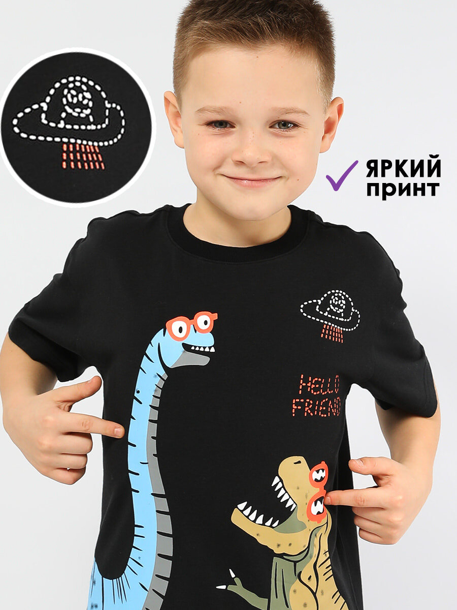 Футболка Соль&Перец с принтом для мальчика, размер 98-104, черный информация: