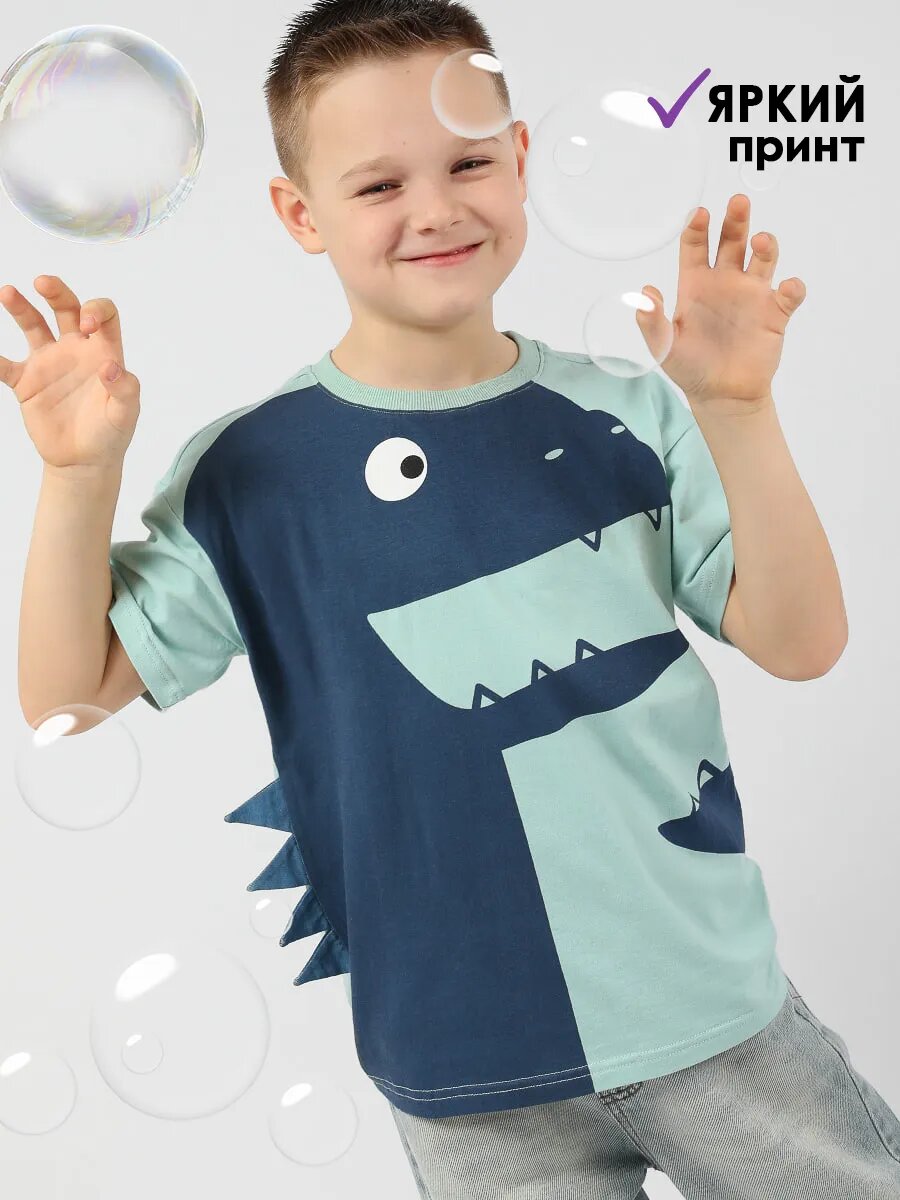 Футболка Соль&Перец с принтом для мальчика, размер 116-122, зеленый 790 ₽