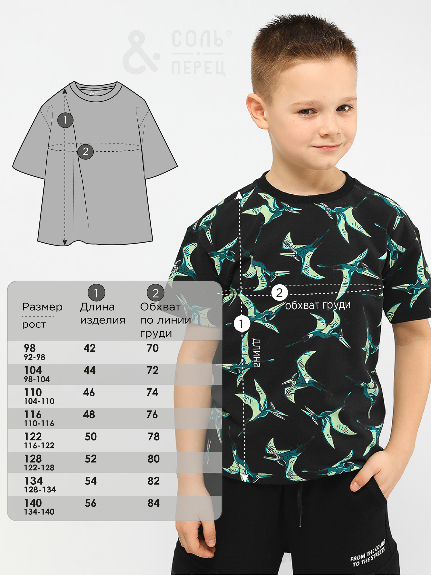 Футболка Соль&Перец с принтом для мальчика, размер 134-140, черный 896 ₽