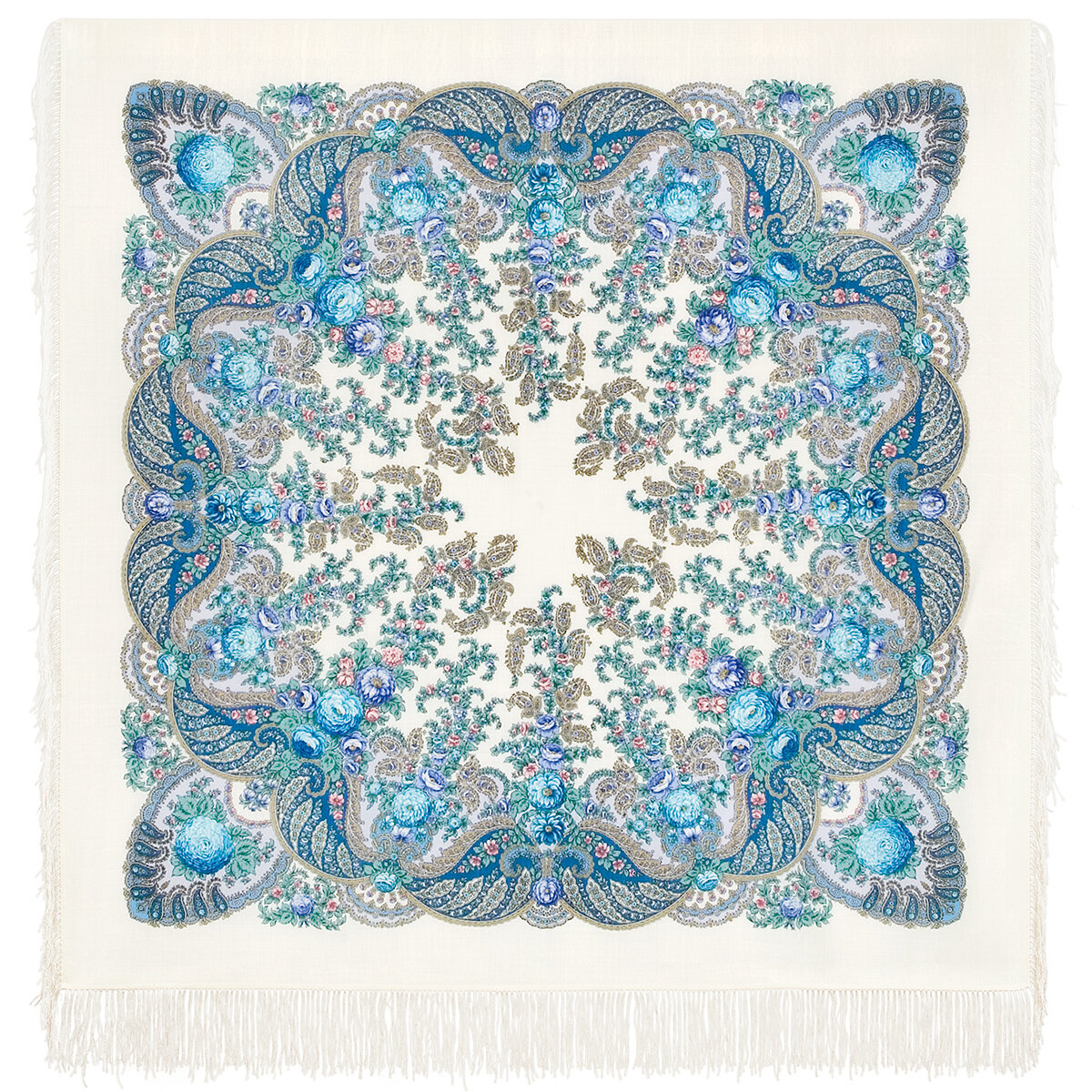 Отзывы на Платок Павловопосадская платочная мануфактура для женщин,125х125 см, голубой/белый
