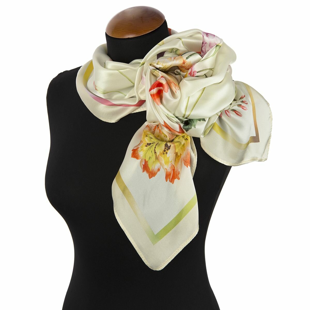 Отзывы на Платок Павловопосадская платочная мануфактура для женщин,89х89 см, зеленый, оранжевый, розовый, белый