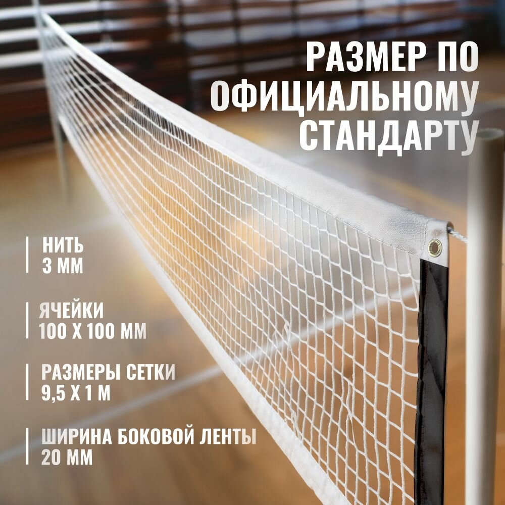 10 цен на Сетка волейбольная/тренировочная 9,5х1 м, нить 3 мм, яч. 100х100 мм