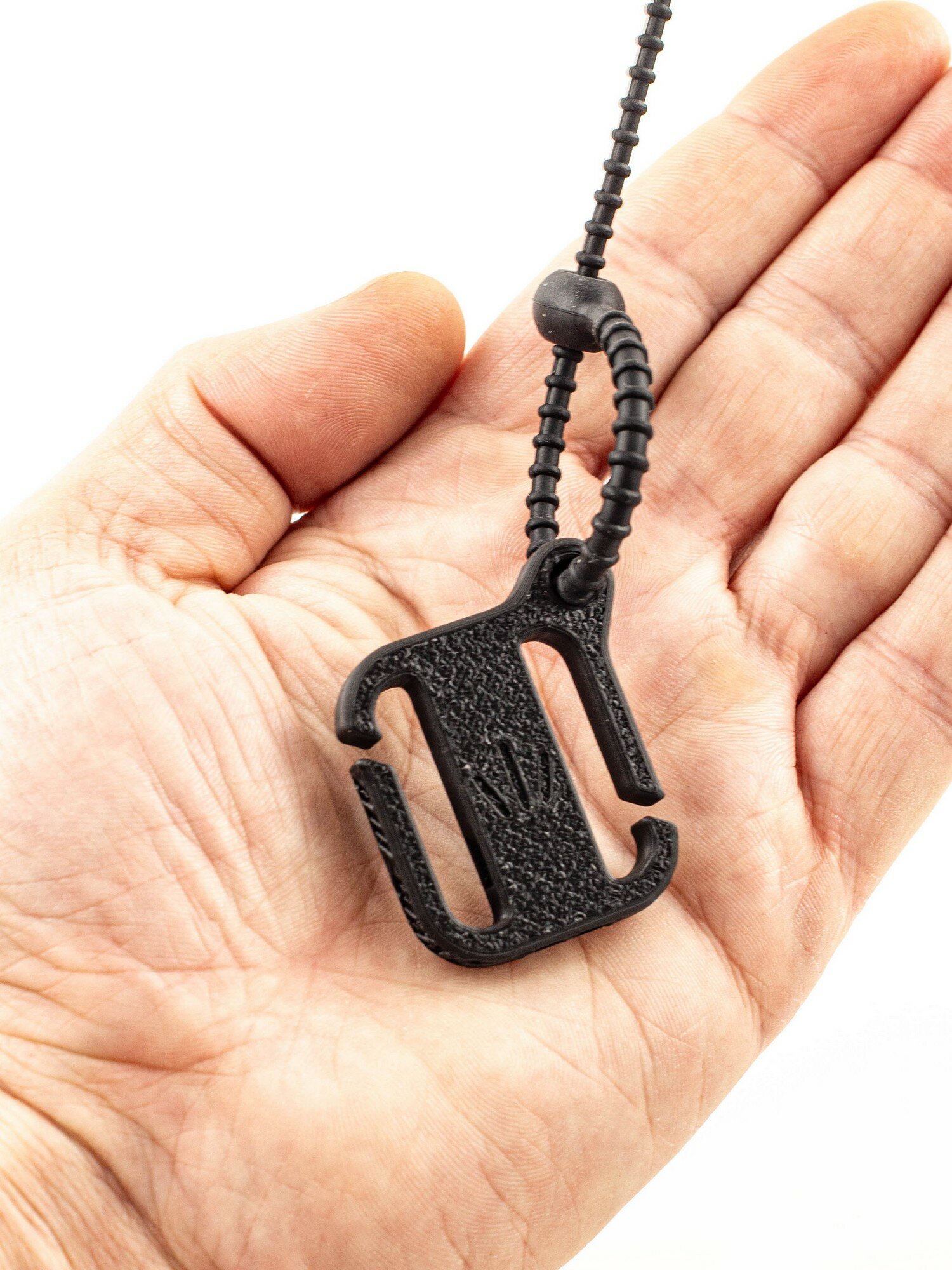 Сигнальный свисток в форме пряжки-двухщелевки с креплением кольцом (черный) информация: