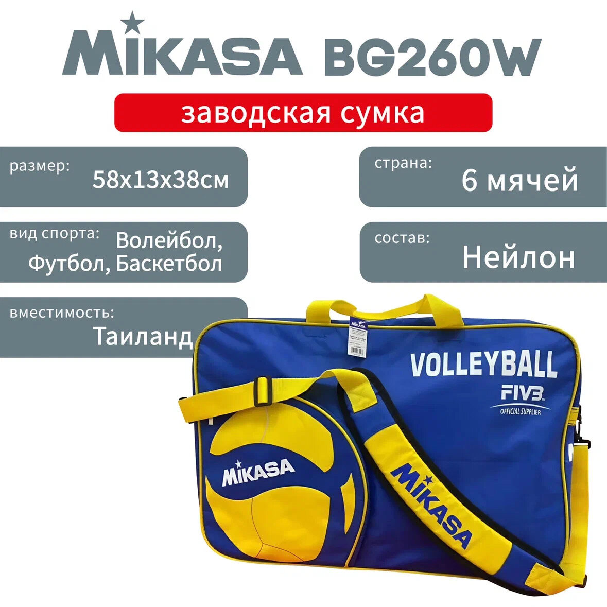 10 цен на Сумка спортивная для мячей Mikasa BG260W , синий/желтый