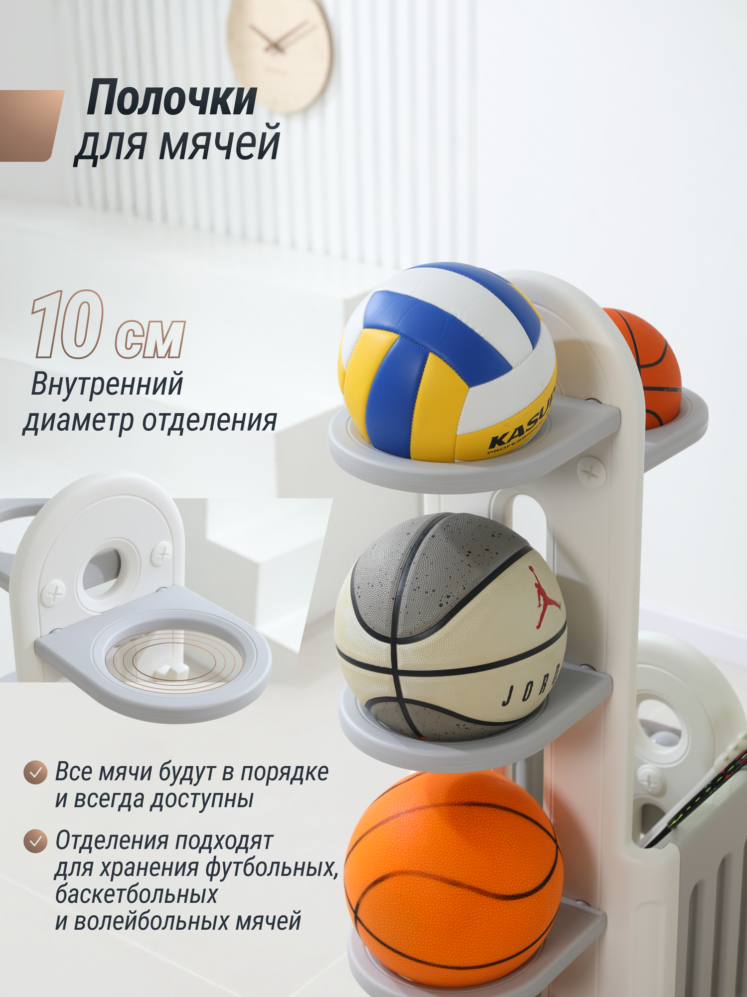 10 цен на Стеллаж для мячей, игрушек и спортивного инвентаря UNIX Kids Classic Grey напольная стойка для хранения, для мячей
