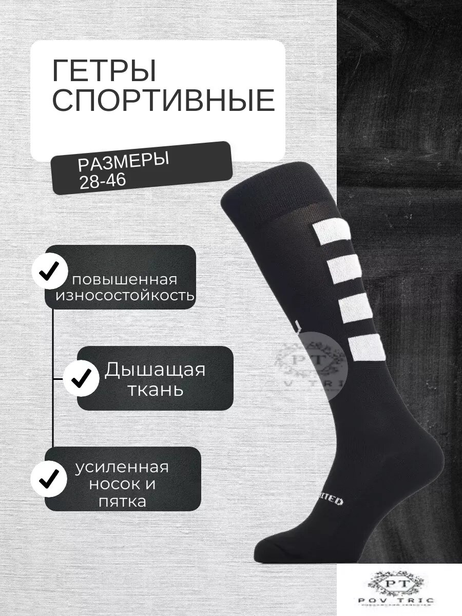 Гетры спортивные POV TRIC Базовая коллекция, размер 28-30, черный информация: