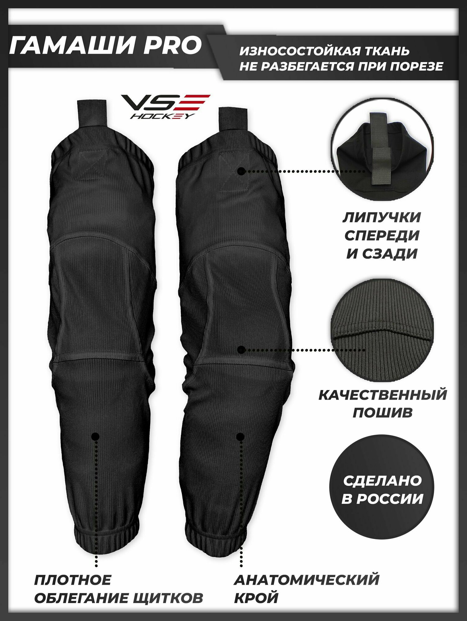 Гамаши хоккейные VseHockey Базовая коллекция, размер YTH+ - 55 см, черный информация: