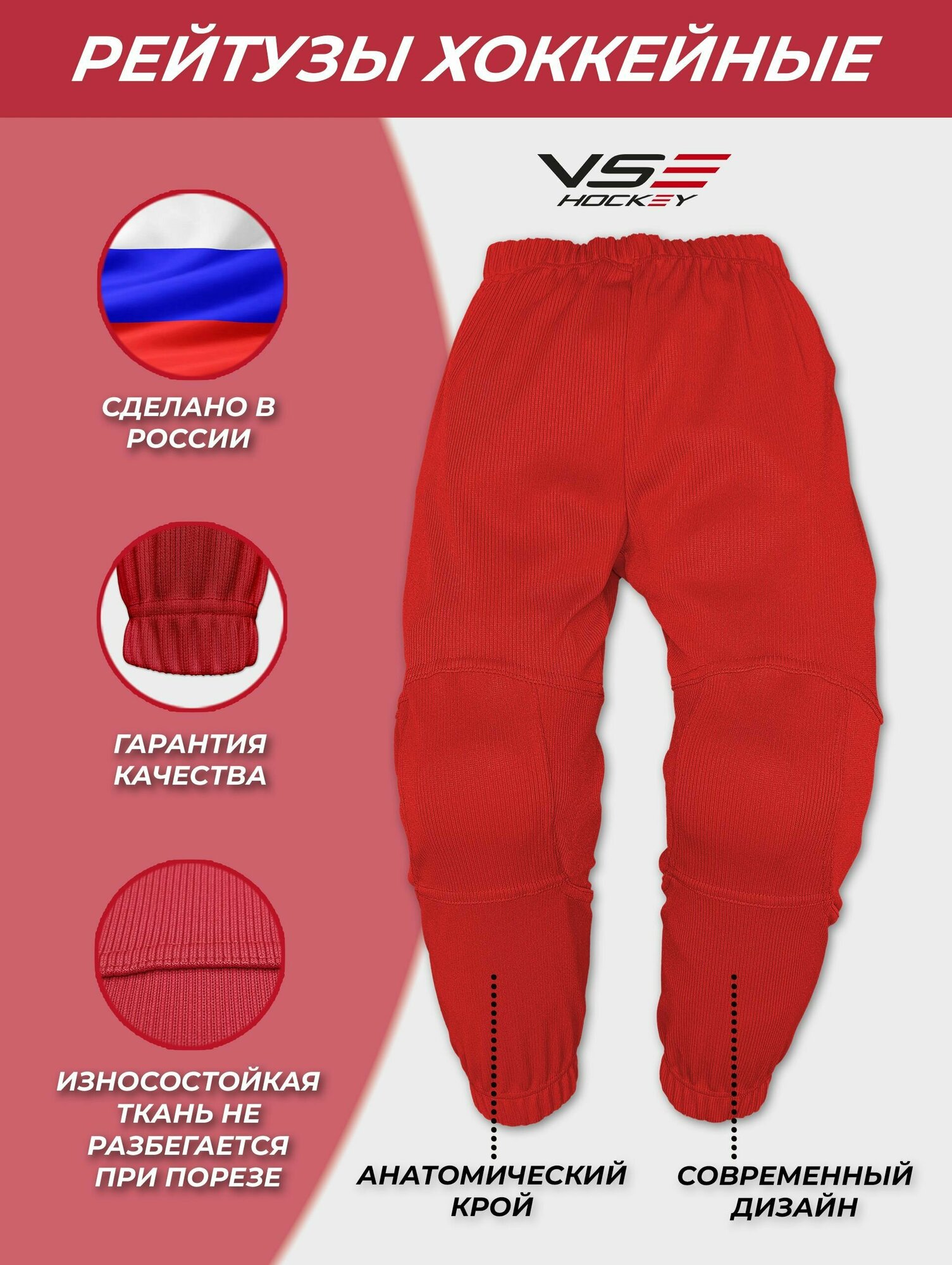 Рейтузы хоккейные VseHockey Базовая коллекция, размер JR-2, красный информация: